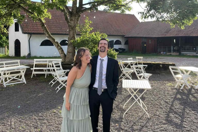 Vill man ändå ge en gåva tackar vi för ett bidrag till vår bröllopsresa.
